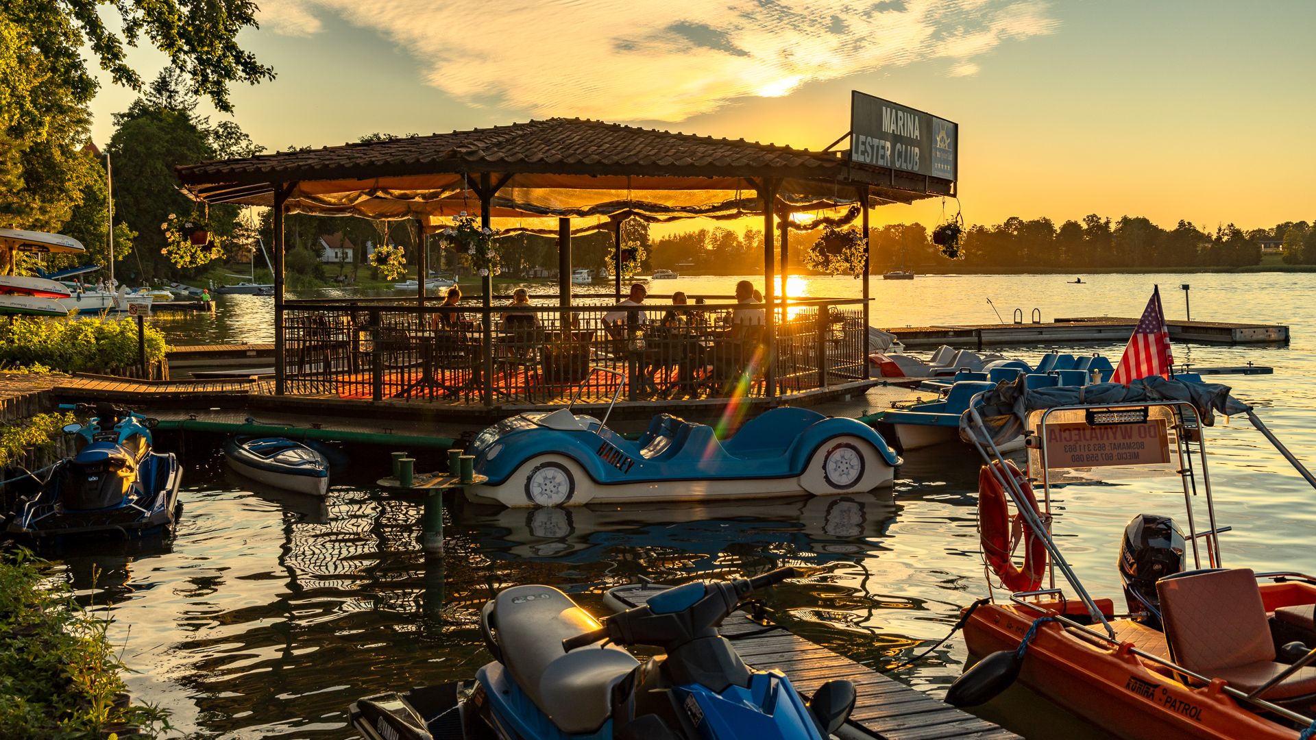 Nasza marina leży nad jeziorem Niegocin w Rydzewie, ale... zachody słońca obserwujemy nad jeziorem Bocznym. Kawałek dalej z naszym portem, jezioro Niegocin przechodzi właśnie w jezioro Boczne. Oba akweny są niezwykle popularne na szlakach Wielkich Jezior Mazurskich. Zapraszamy na podziwianie zachodów słońca z największego molo na Mazurach...
