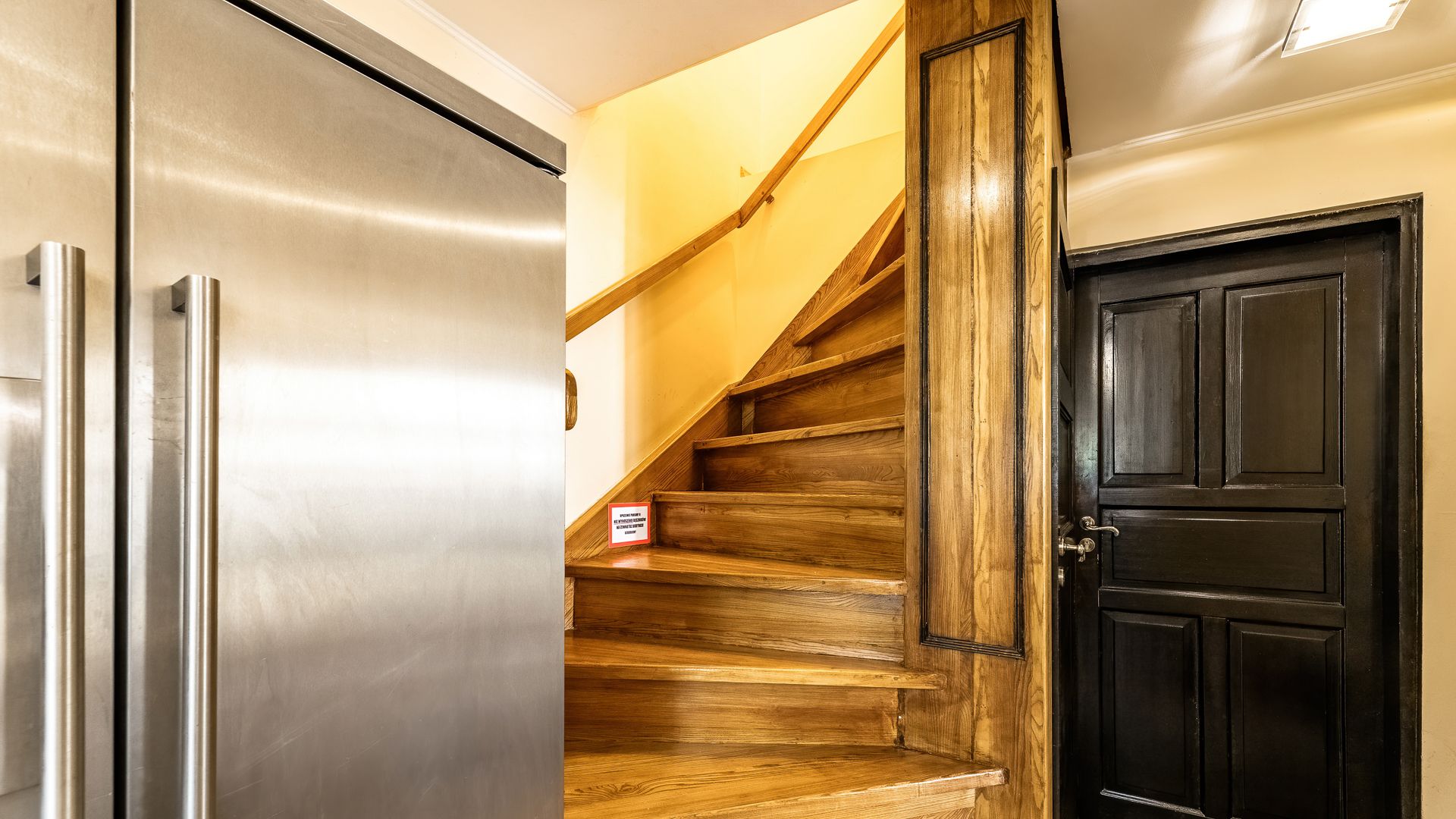 Dwuosobowy pokój na piętrze ze wspólną łazienką na parterze.